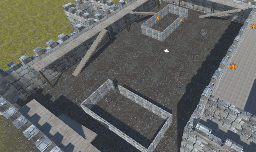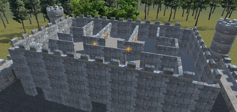 Today I added more trees to the forest to make it trickier to navigate. I made some adjustments to the hills to accommodate a lake. I created stairs between the three floors of the castle and created stairs leading up to the platforms. I also started with the roof of the keep.