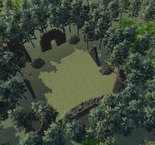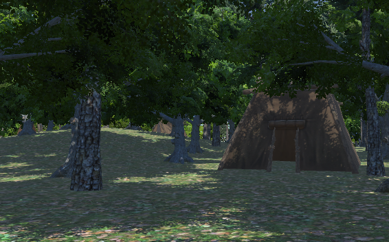 Today I added some ruins in the forest as well as tents scattered about. I also started putting together a village at the foot of the hill where the castle is. Nothing has any meshes yet and the tents and houses still need to be scaled down as they are huge compared to the character.