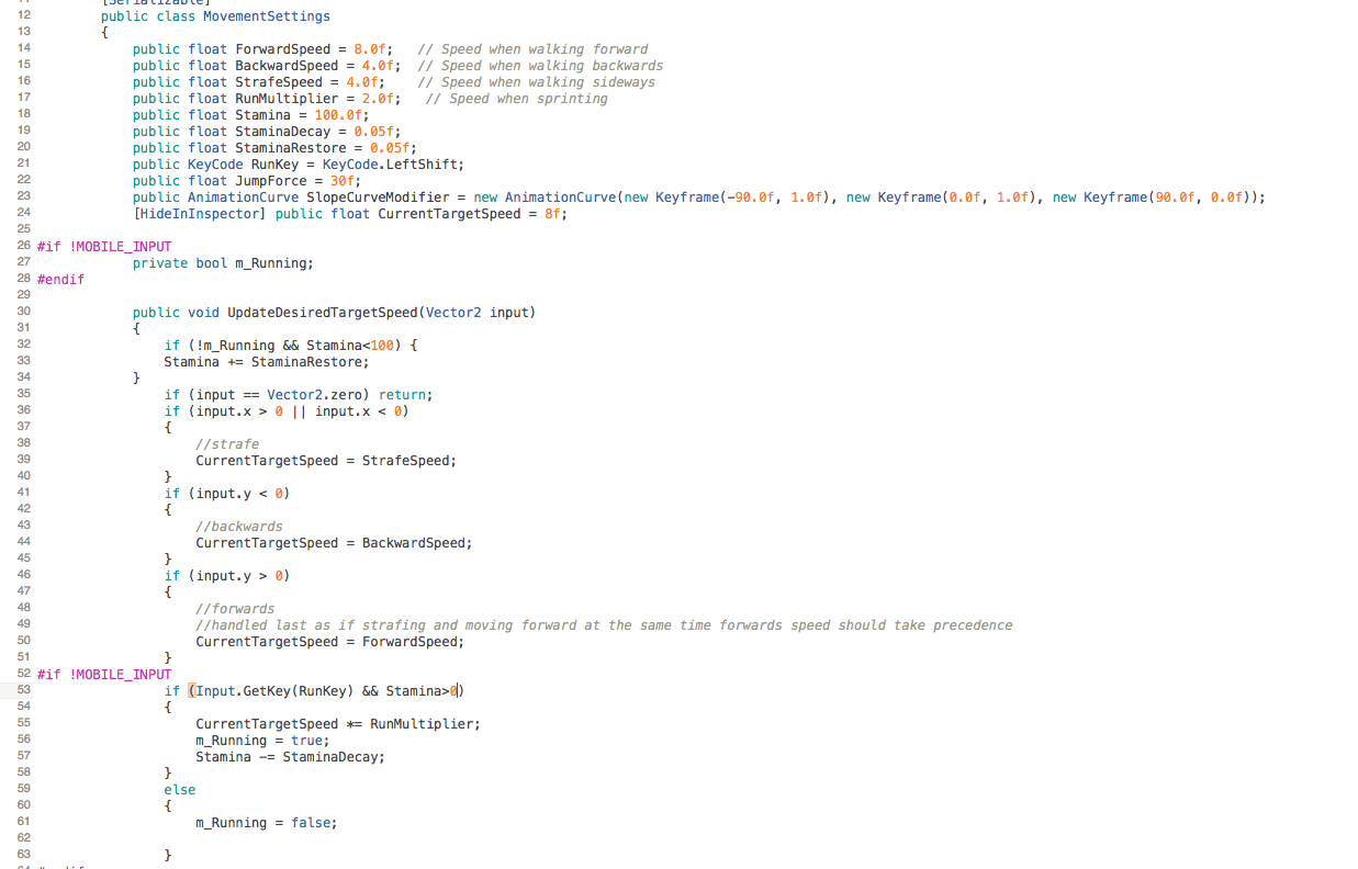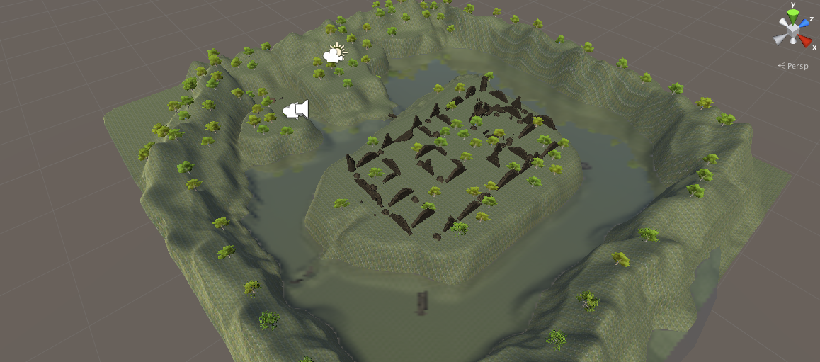 Today I added more detail to the alternative level, more crumbling walls and piles of rubble to the ruins and trees all over the levels (barring the water, of course). I also added and tested a stamina system in the main level where the player character would have 100 stamina and sprinting (which would double movement speed) would cost 0.05 stamina per update cycle (but hitting 0 stamina would stop sprinting), not sprinting will cause the player character to regain 0.05 stamina per update cycle but will never go over 100 stamina.