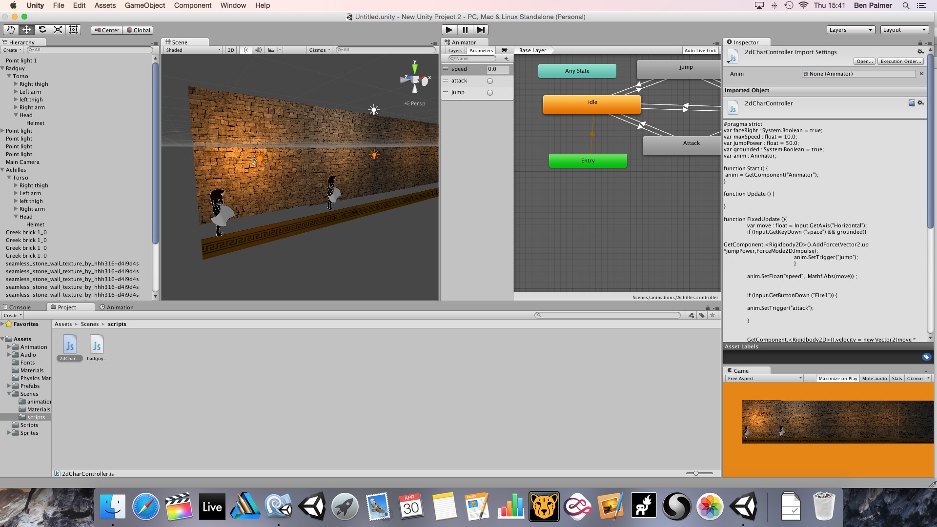 After initial experiments with the Unity3D tools, Ben decided he wanted to begin development of a 2D Platform Game inspired by his interest in Greek History and Mythology.