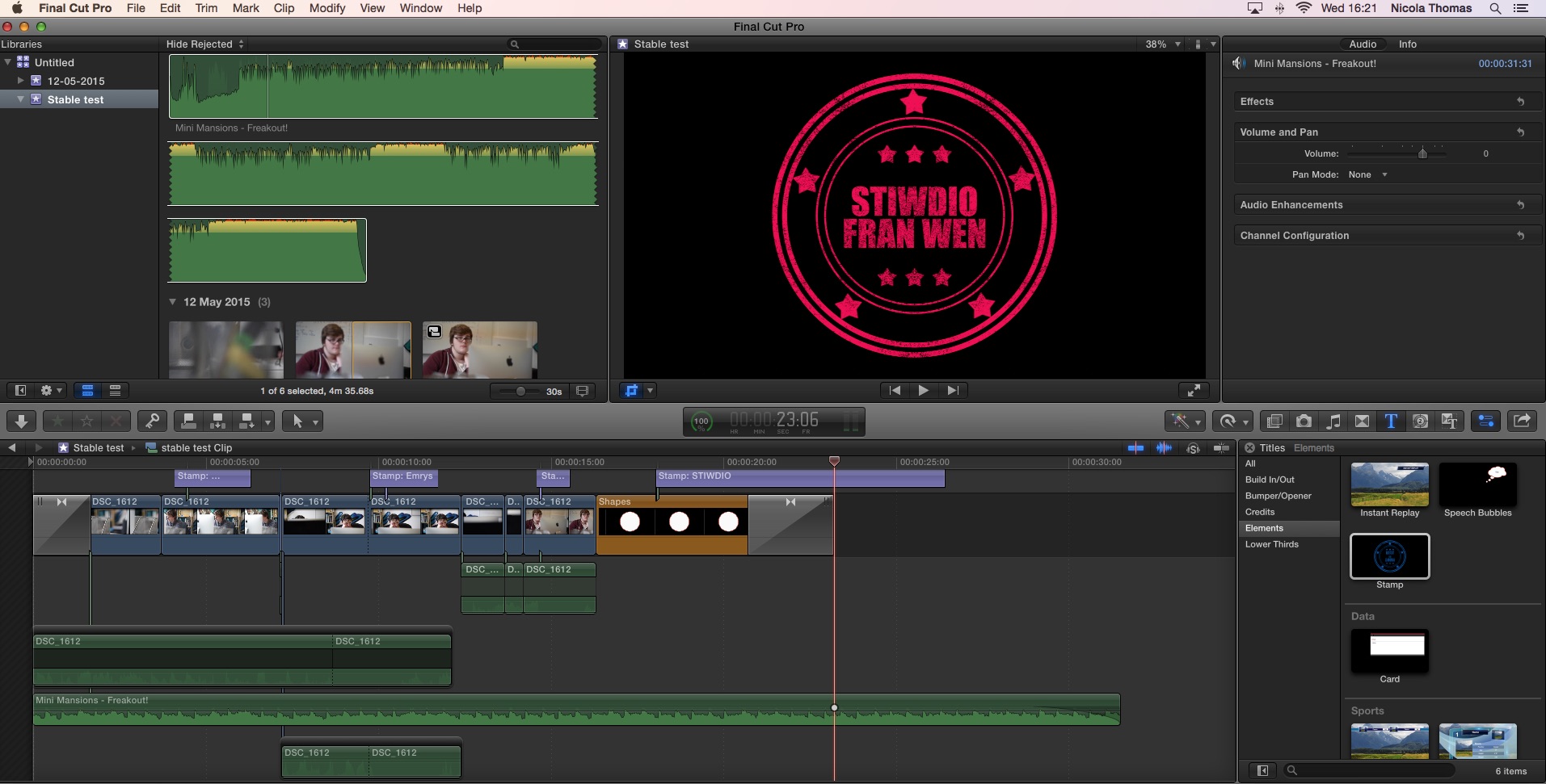 I couldn’t wait to get to the studio this morning, I was eager finish the fun piece of footage I had put together yesterday. Although the content isn’t for anything specific it definitely helped me get to grips with final cut again, I was able to use the skills I already had and develop them further creating a fun video of some of the SFW (Stiwdio Fran Wen) students. I used many of the elements in Final cut that I would use on the project we have in mind, this was a great way for me to refresh my final cut skills before putting them into action for the project ahead.